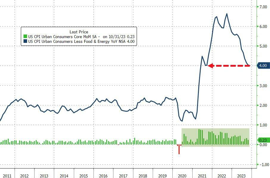Core CPI up +0.3% M/M (as expected), +4.0% Y/Y - unchanged from October data.