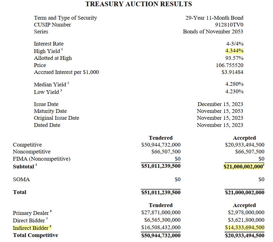 30Y US Treasury bond auction positive: foreign investor demand leads