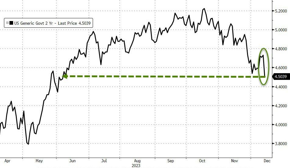 10Y yield immediately pushed back to 4.00% while 2Y note drops 23bps, lowest since June.