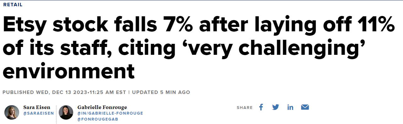 Etsy announces 11% staff layoffs right before holiday season as e-commerce market faces many challenges.