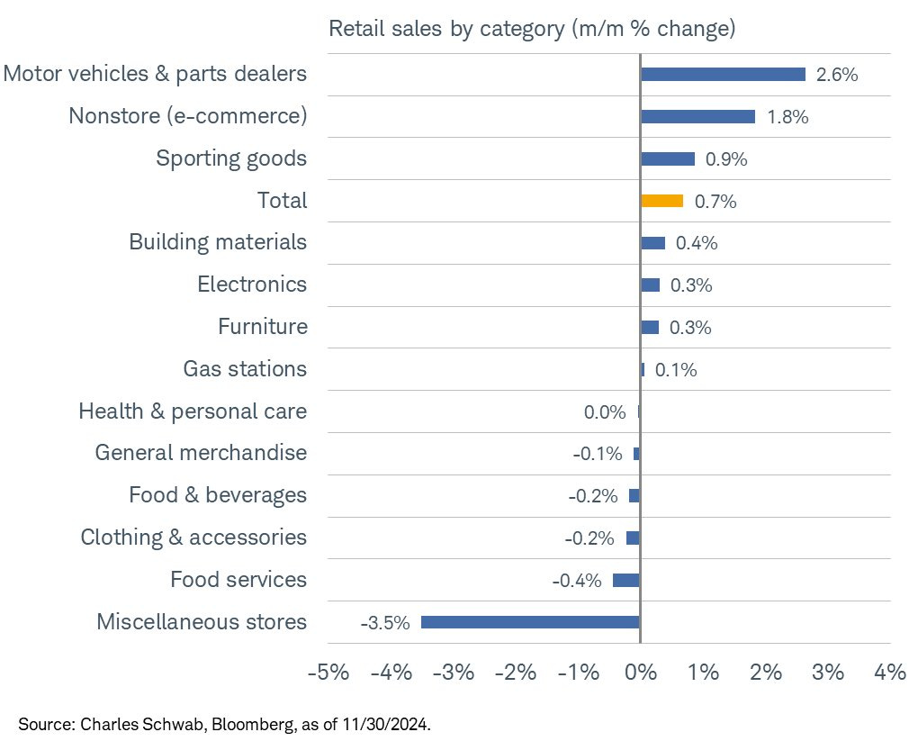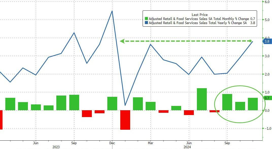 Aggregate retail sales up +0.7% MoM, higher than +0.6% forecast and +0.5% Oct