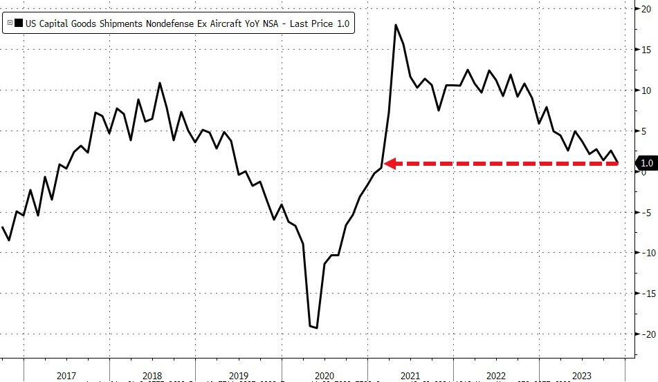 Core capital goods shipments (core capital goods), down for 2nd straight month, pulling YoY growth to +1.0% - lowest since Feb 2021.