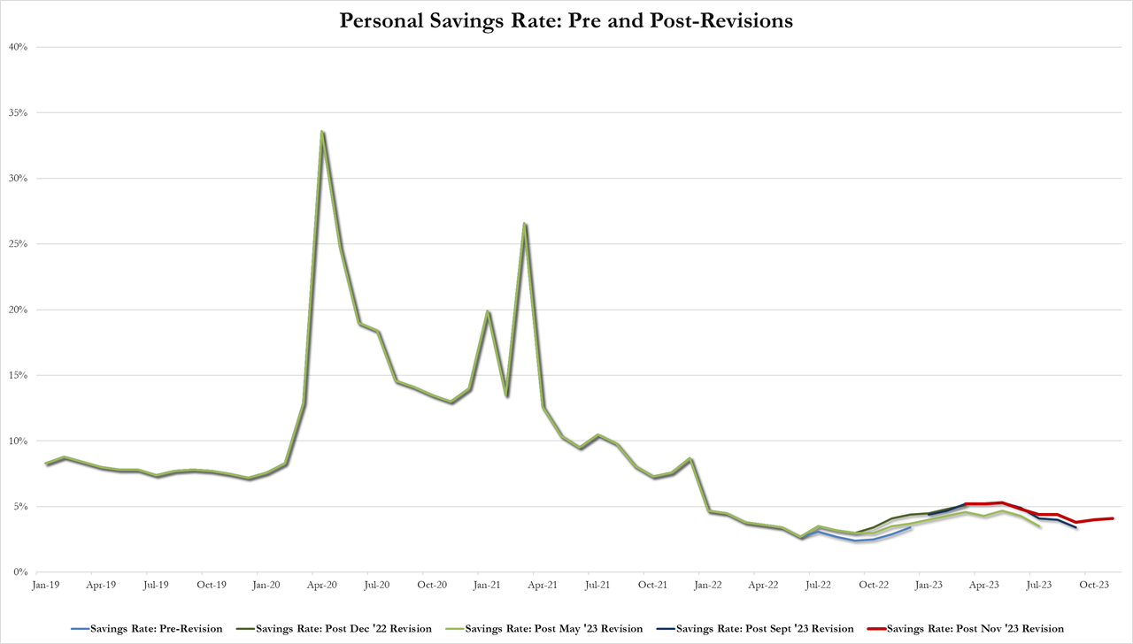 However, notably, while spending growth is low, US household income growth this month is quite high (higher than M/M spending growth):