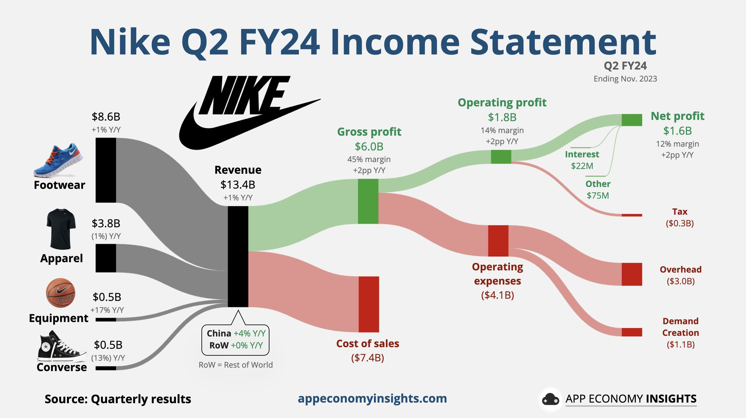 Nike shares plunge after the sportswear maker lowered its revenue forecast for fiscal year 2024.