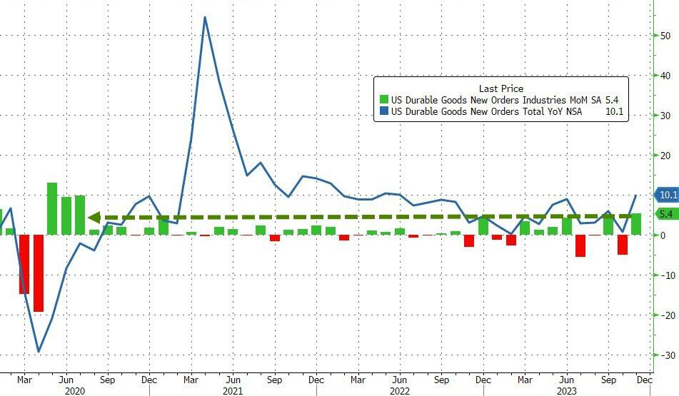November durable consumer goods orders (durables) up +5.4% MoM — largest monthly gain since July 2020,