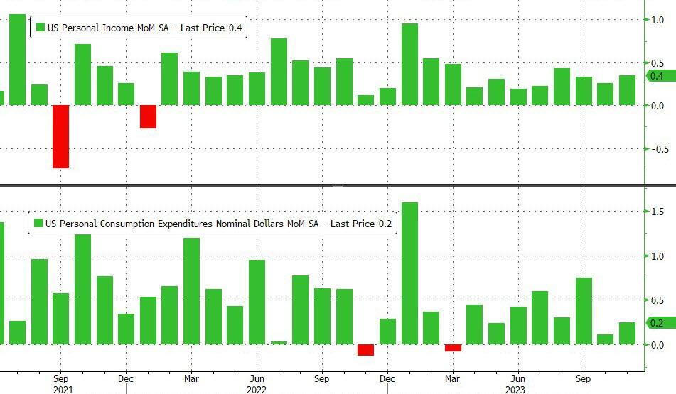 Both income and spending rose in November, at +0.4% M/M and +0.2% M/M.