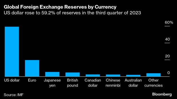 The greenback accounts for 59.2% of global reserves in Q3, (down from 59.4% in Q2)