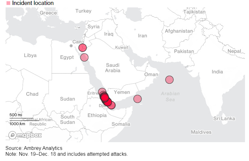 Attacks or seizures of ships are spreading more widely in recent weeks.