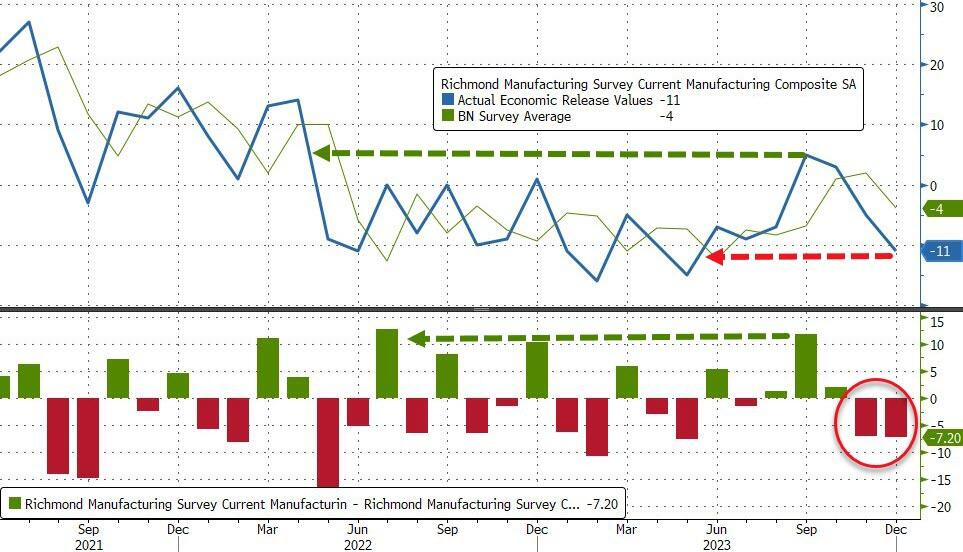 In the last two months, Richmond businesses' manufacturing index has fallen more than expected, signaling negative production trends.