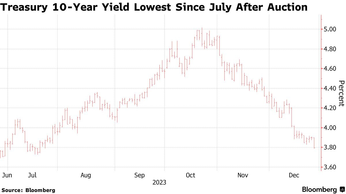 Auction results caused 10Y yield to drop to 3.79%. Yields on 5- to 30-year bonds fell at least 10bps on the same day.