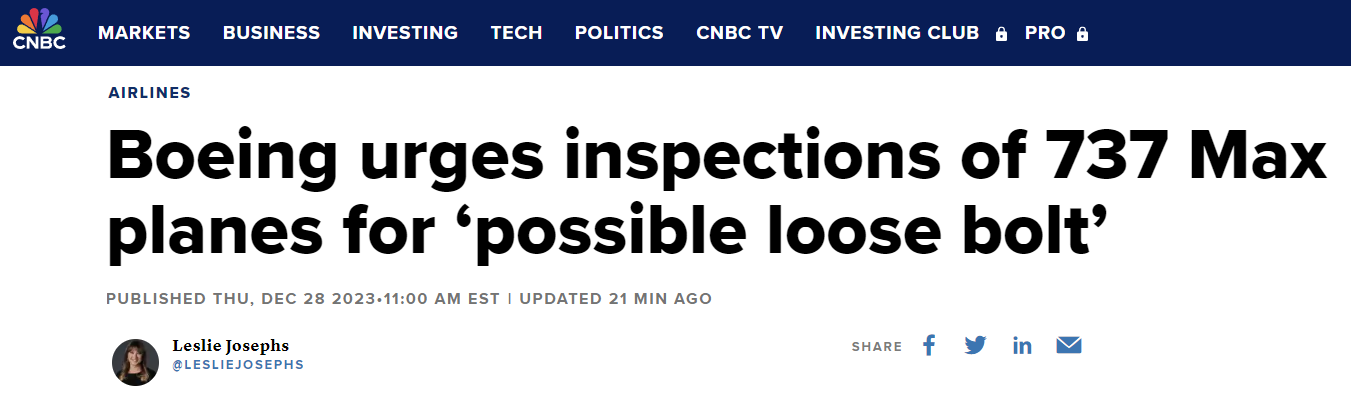 Boeing proposes fleet-wide inspections of 737 MAX aircraft after finding loose bolts during routine maintenance and another incident involving improperly secured hardware.