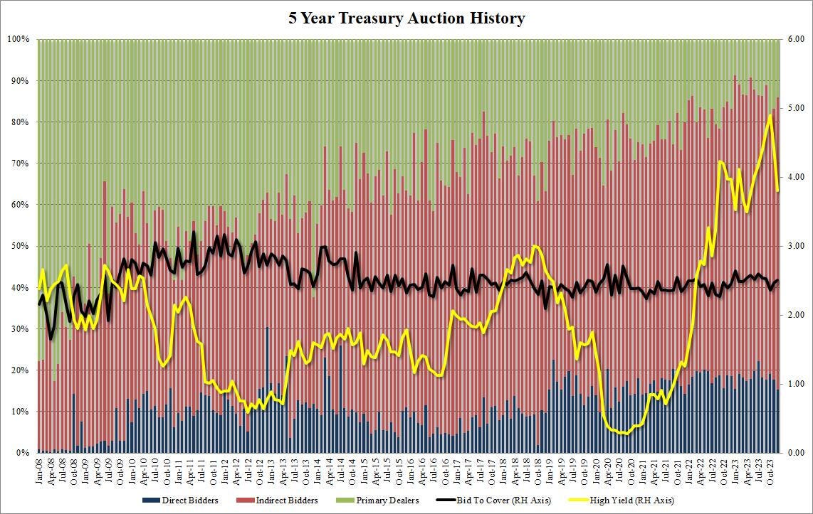 5Y bond auction worth 58 billion USD sold at yield of 3.801%, lowest high yield since May/2023.