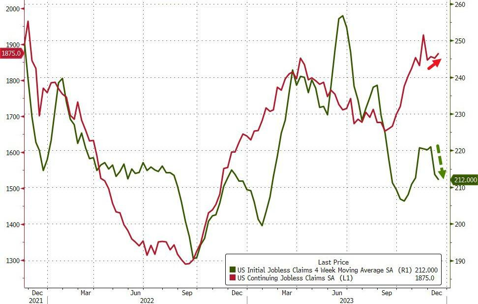 The 4-week average initial claims showed little change, reaching 212,000 - the lowest since October.
