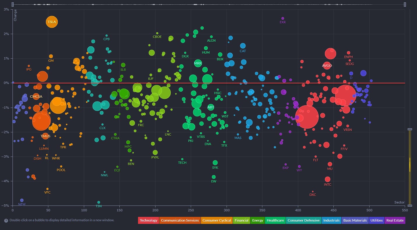 Market in second session slightly down after rally week with quite low market liquidity as investors continue to reassess positions after last week's economic data as well as Powell's tone change post-FOMC. Market liquidity today is quite low with most cash flows deciding to sit out in the morning with indecisive market sentiment keeping SPY moving around 410. Small caps as well as big tech sold off in the morning, while commodities sector fell against lightly recovering financial banking sector after the first hour of opening.