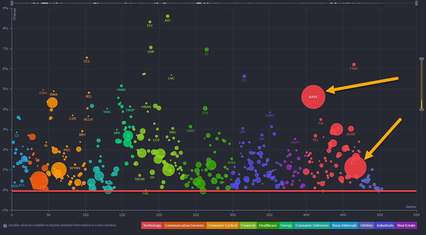 Along with Microsoft, Apple and mega cap tech sector strongly pulled the market in the morning session, creating a mild short-covering rally before genuine organic buyers joined after about 1 hour from open, forcing volatility back to the FOMC day's low
