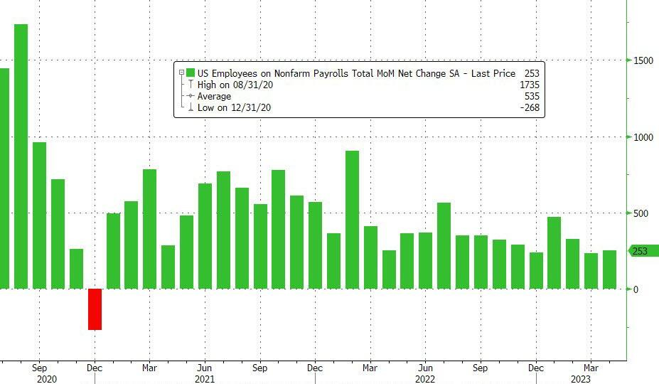 Total jobs +253,000 in April, above 180,000 forecast