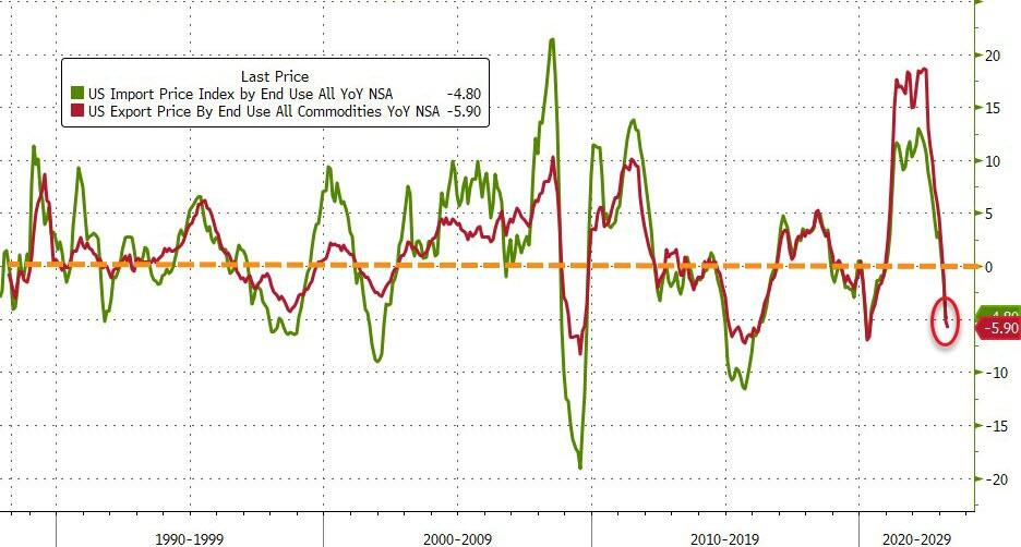 Import-export price index drops -4.8% and -5.9% YoY, clearly showing collapse in input prices
