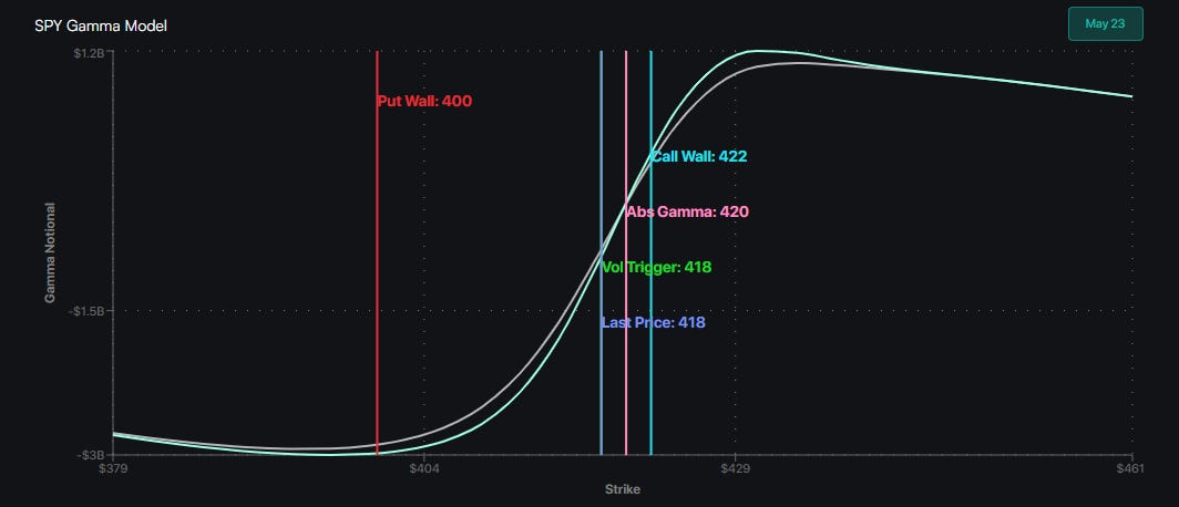 SPY continues to be rejected at 420, options traders focusing on the downside