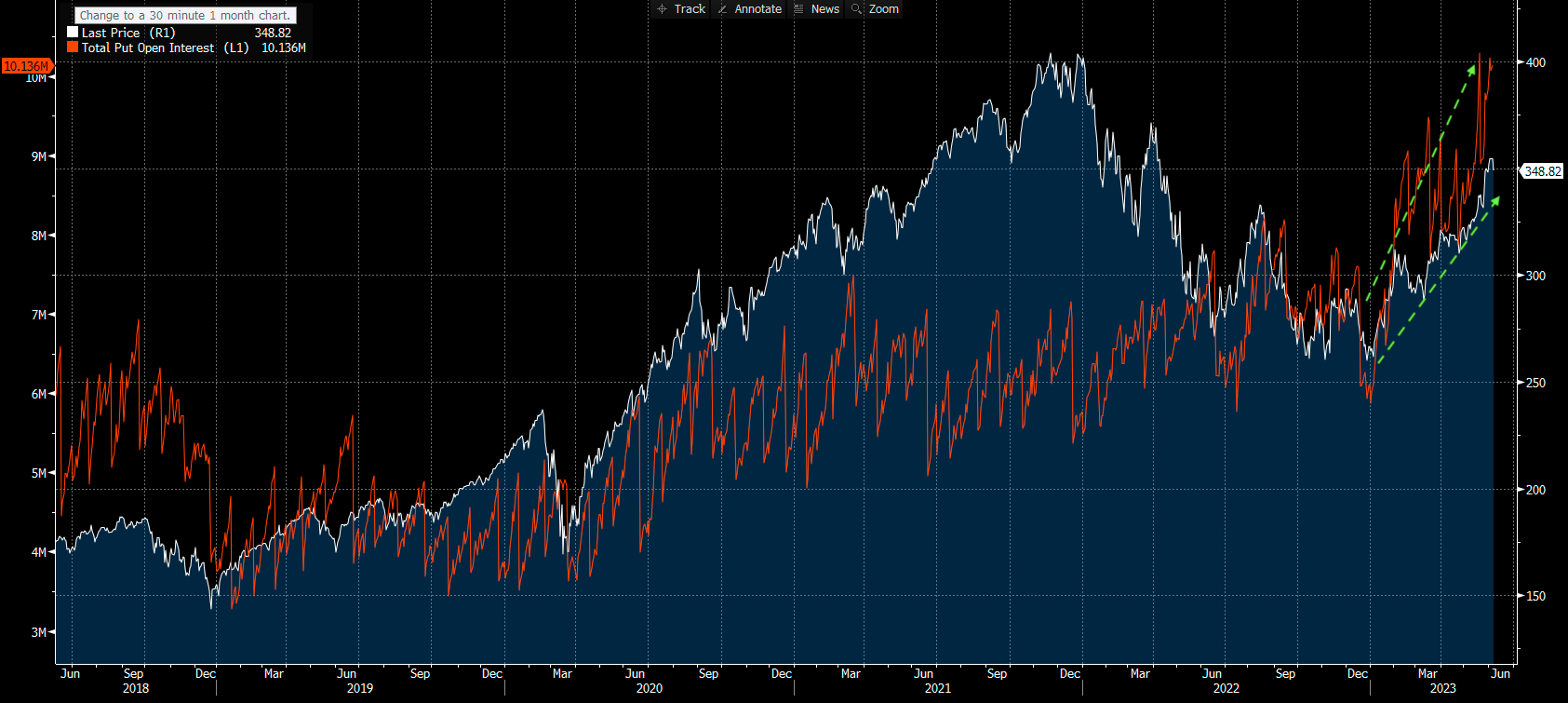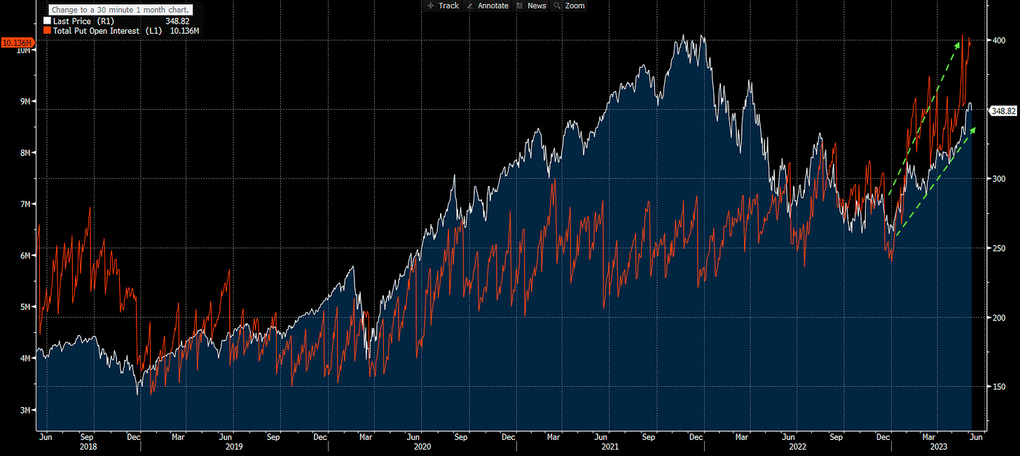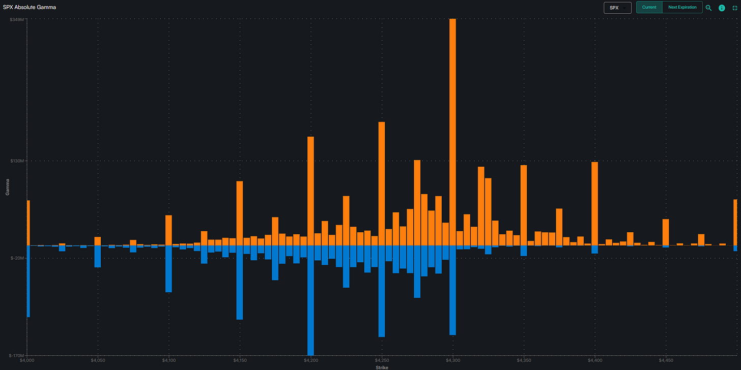 In IWM, after receiving the 2nd largest call volume in history yesterday, it temporarily pulled back lightly in the morning after unemployment claims data weighed on the 'soft landing' mindset that had driven small caps up over the past week. SPX meanwhile continues to bounce back within the 4250-4300 range established ahead of FOMC.