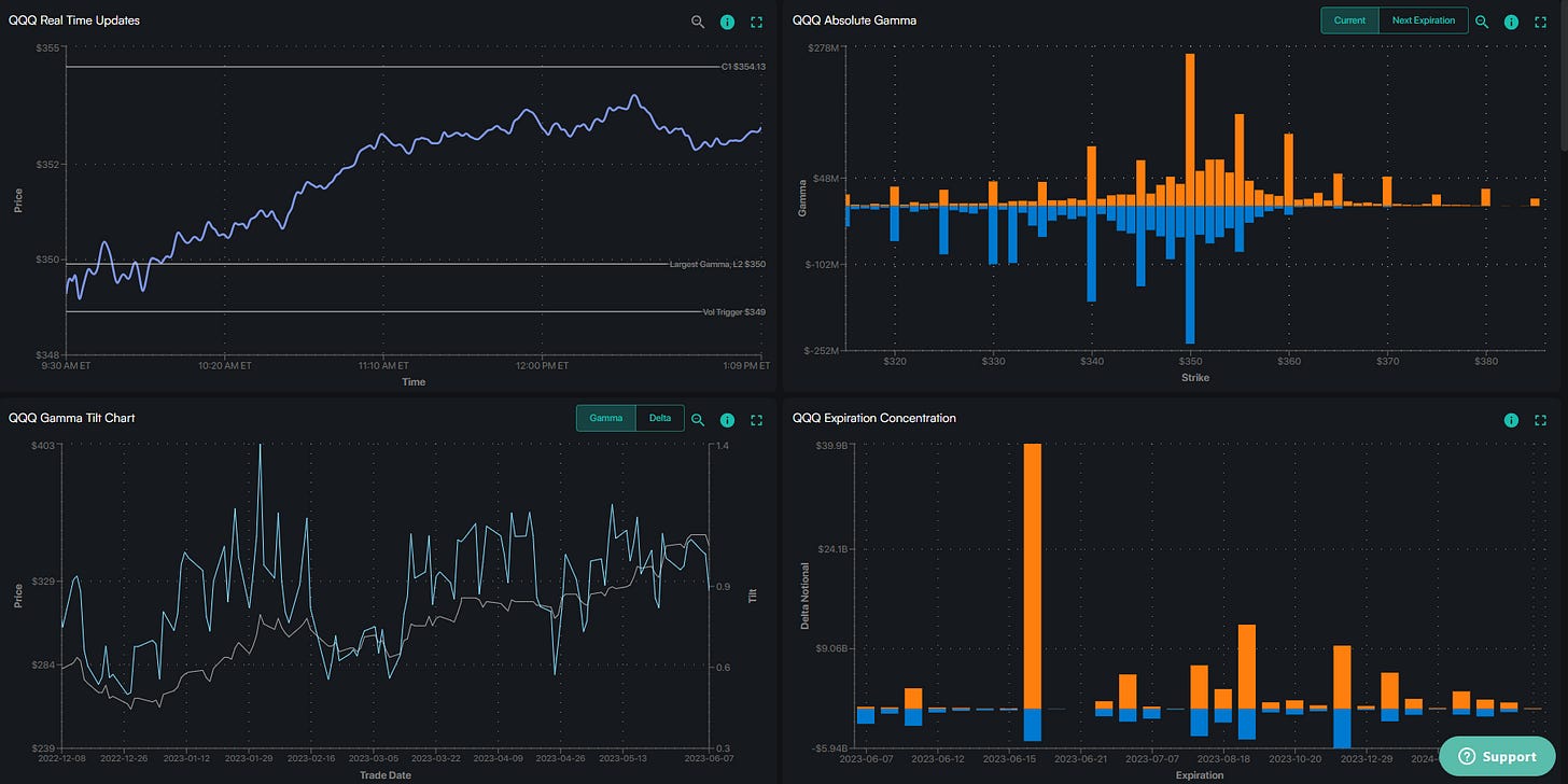 With volatility continuing to hold the downward trend in the morning from yesterday, put holders forced to cover in the morning across the entire index, creating pressure that helped QQQ bounce back through the important 350 gamma flip level after an extremely volatile first 30 minutes. However, the absence of organic buyers here shows that today's rally in the tech block has more 'technical' characteristics than the sector rotation trend having truly ended.