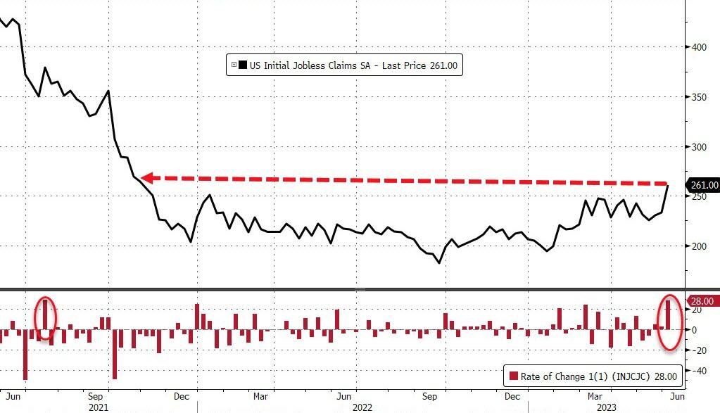 Number of unemployment benefit claims last week surged to 261,000 from the expected 235,000. This is the highest level since 07/2021.