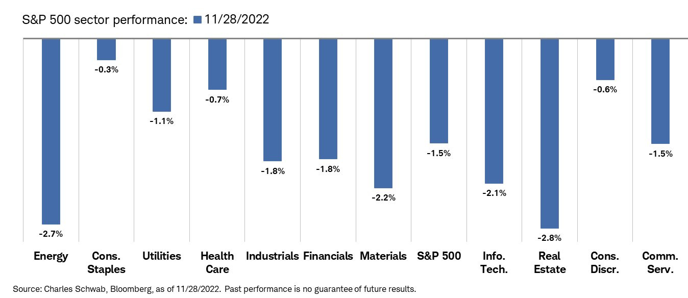 US stocks recover after a strong drop yesterday, with low overnight futures volatility as investors continue to assess impact from the largest protests in China since the Tiananmen incident in 1989. Crude oil prices tick up slightly on expectations of strong demand from the Chinese market if reopening, pushing energy sector up nearly 1% in the morning while real estate stocks also up over 1.1%, mostly recovery after heavy pressure yesterday.