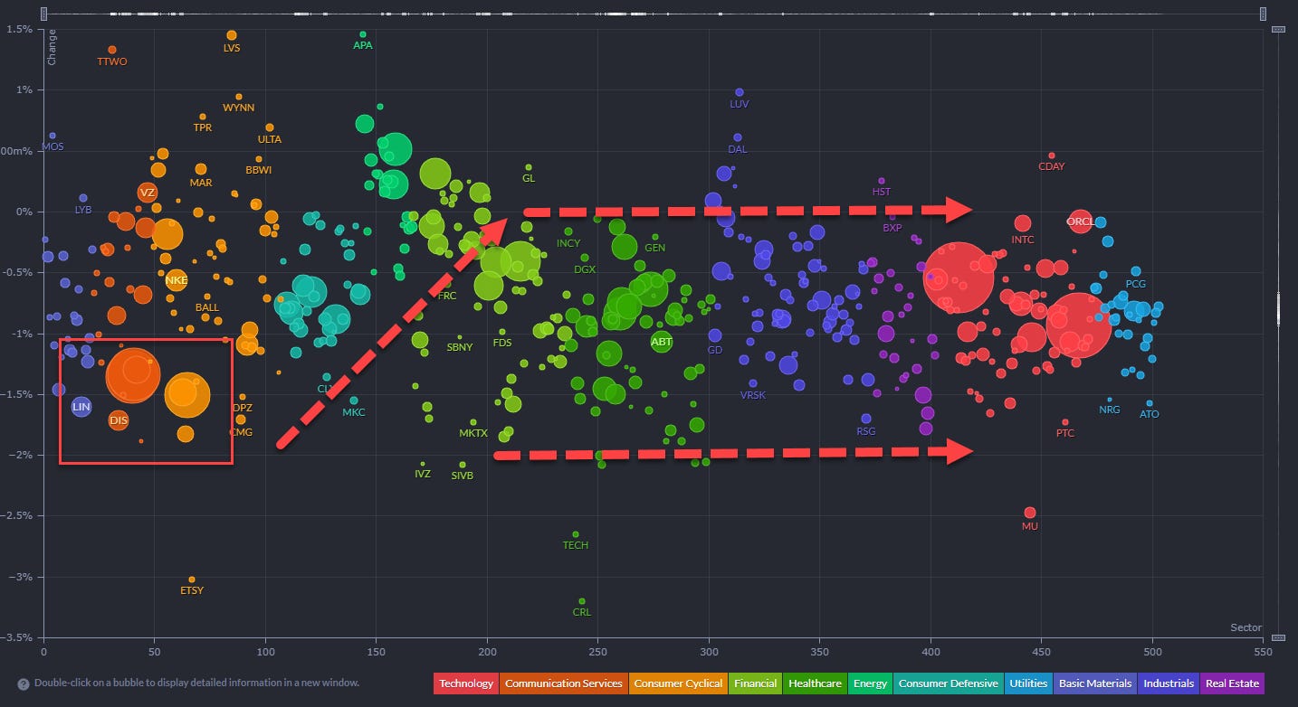 The market opened the last trading session of 2022 with extremely low liquidity compared to yesterday. Light selling pressure appeared at the open with tech continuing to face significant pressure, pulling SPY down through 380 before being sucked back above the important gamma level. Sector rotation proceeded quite slowly with money flow mainly pushing into healthcare and energy as well as consumer defensive small caps.