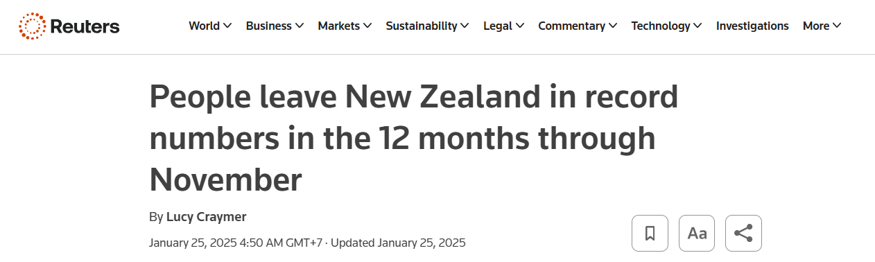 And most importantly: young people — the group that creates future value — are leaving New Zealand at record speed.