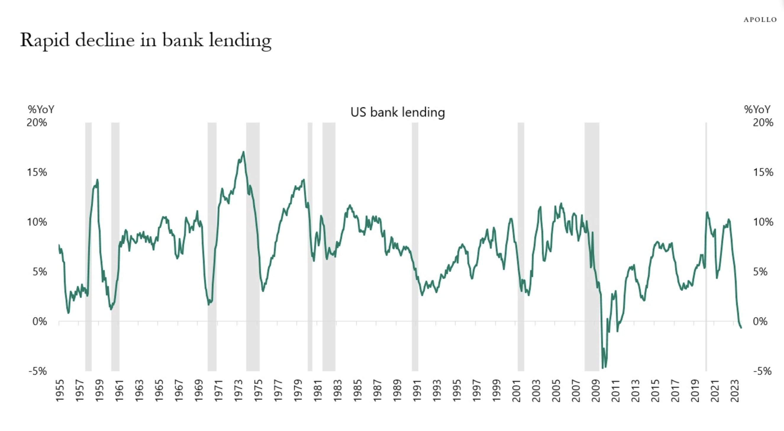 Lending activity at US banks is declining compared to last year: