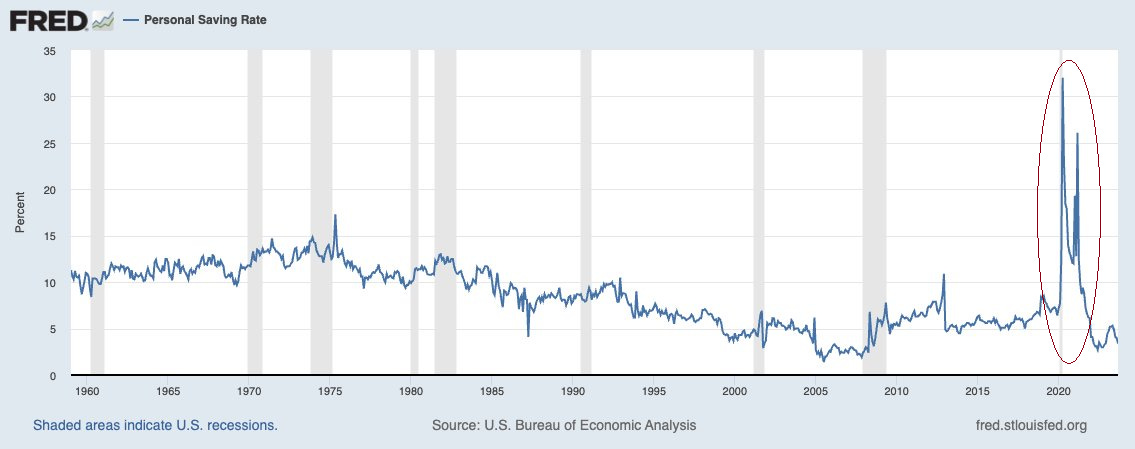 … as households used their Covid-era savings to fund the surge in spending.