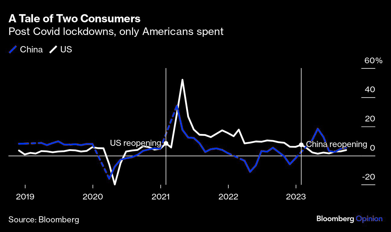 The chart below clearly explains the contrasting consumer demand situation in the US and China post-Covid: