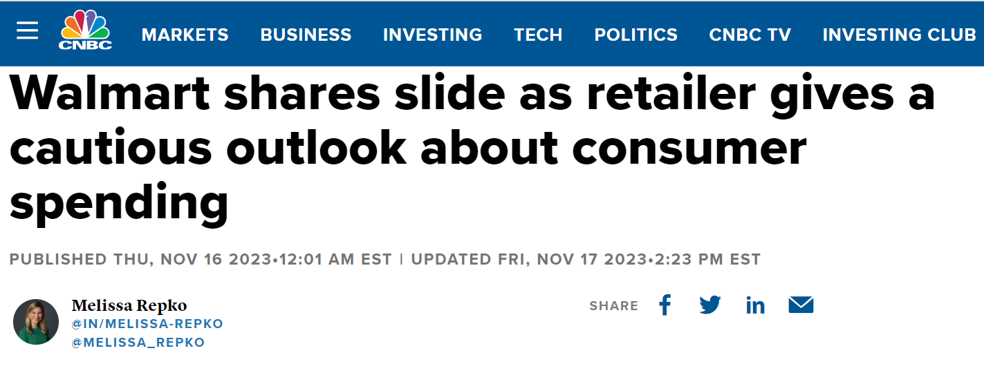 Walmart supermarket chain also has a cautious view on Americans' consumption capacity