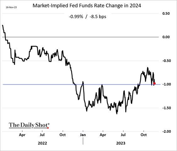 The market is quite excited anticipating that the Fed will cut rates by -1% in 2024 for this reason.
