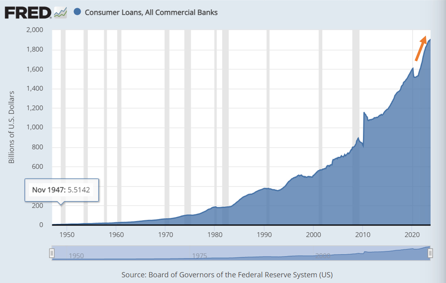This is the premise for consumer demand starting to weaken… (when they can no longer borrow to fund consumption).