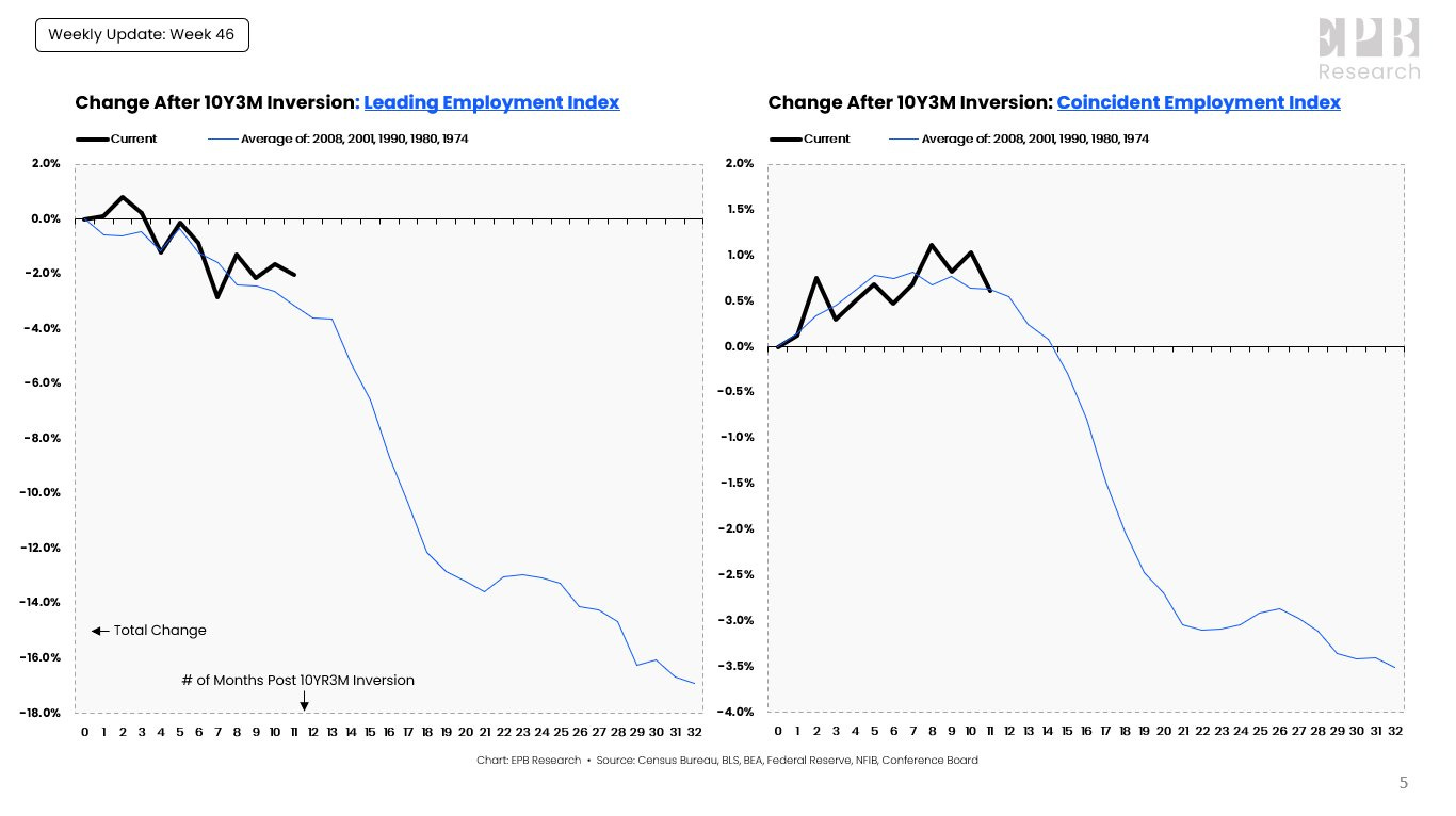 In addition, both composite employment indices: leading indicator (leading indicator) and coincident indicator for labor (coincident indicator) are following exactly the average trajectory during previous recessions (2008, 2001, 1990, 1980, 1970),