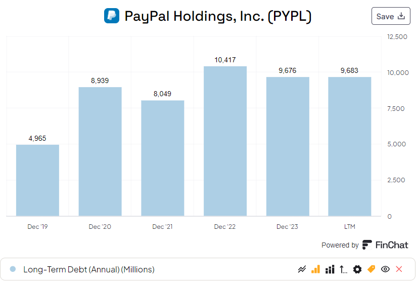 PayPal has reduced risk in recent quarters as long-term debt is on a downward trend.