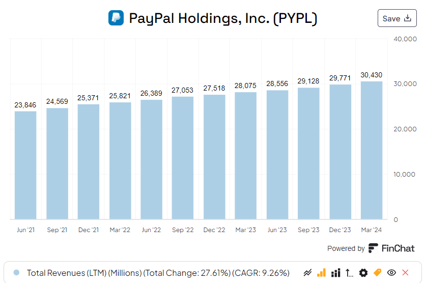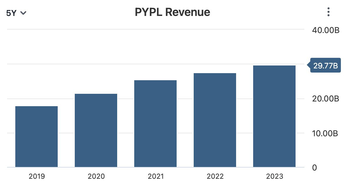 PayPal is not a young company; it was founded in 1998. However, it continues to deliver strong revenue growth in its 26th year.