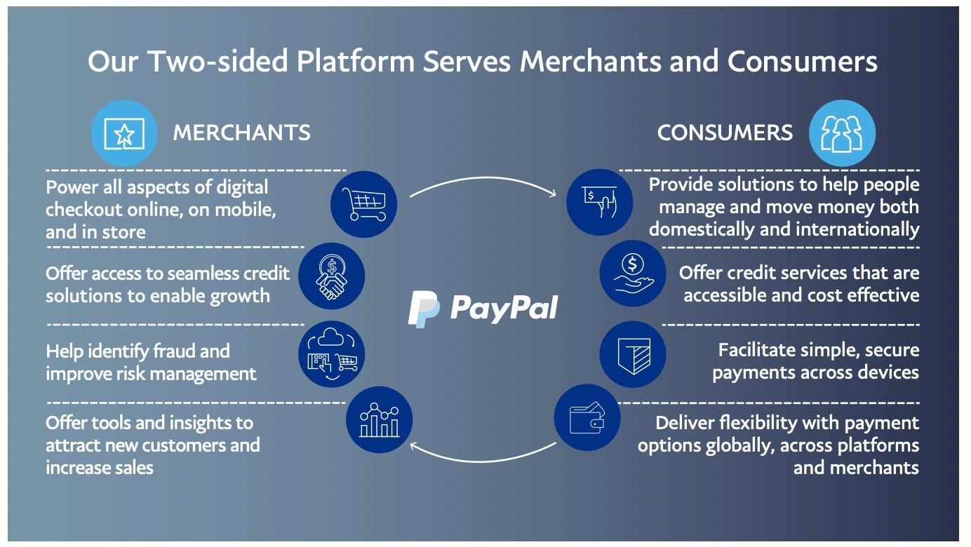PayPal provides services to both individuals and businesses with 3 main business segments: PayPal, Venmo and Braintree