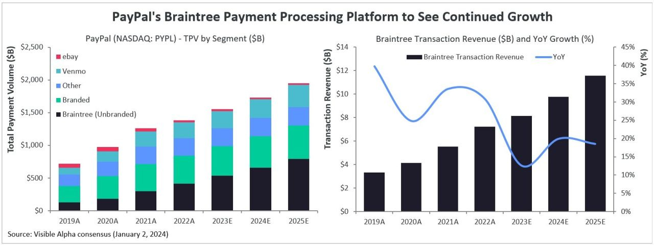 2024 is expected to be a “transitional year” where PayPal will expand its ecosystem with new features—including FastLane payment service, Smart Billing tool, and Cash Pass rewards program—to increase revenue per user.