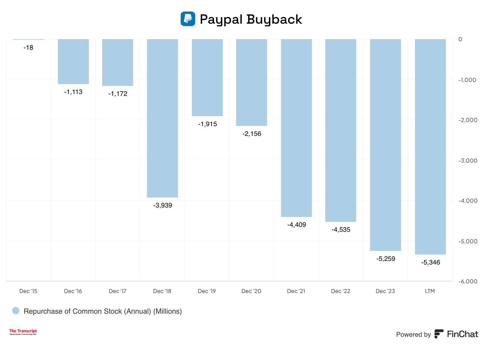 According to PayPal's CFO: "$17 billion in cash on the balance sheet. And we have committed this year to allocate more than $5 billion for share buybacks. More than 100% of our free cash flow will be used for buybacks this year."