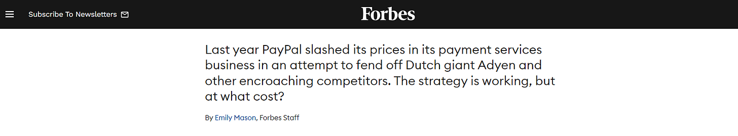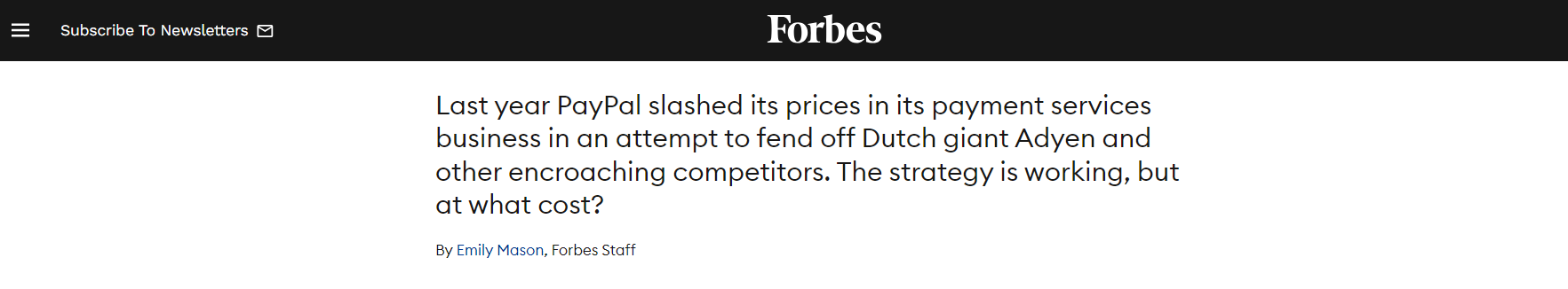 In spring 2022, PayPal tried to attract merchants by offering lower prices for Braintree services and then providing them with profitable features like branded checkout, credit products, or PayPal Payouts that help companies like Uber pay drivers.