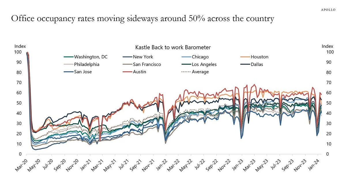 Since the Covid-19 pandemic, the remote work trend continues to cause a sharp drop in office leasing demand, making commercial real estate (CRE) like a ticking time bomb for the financial market in 2024.