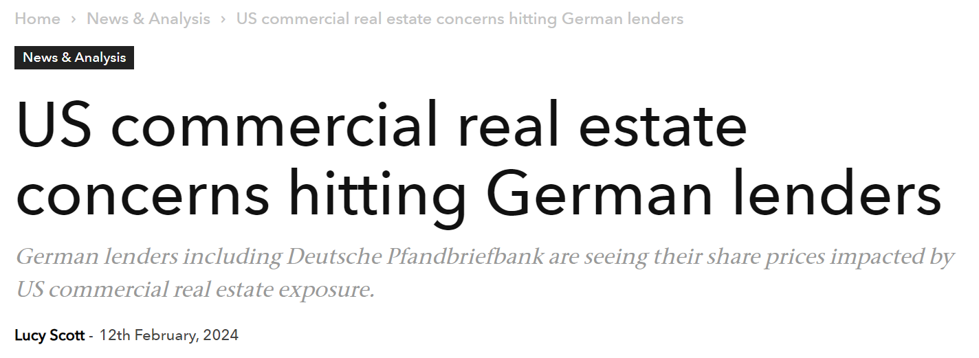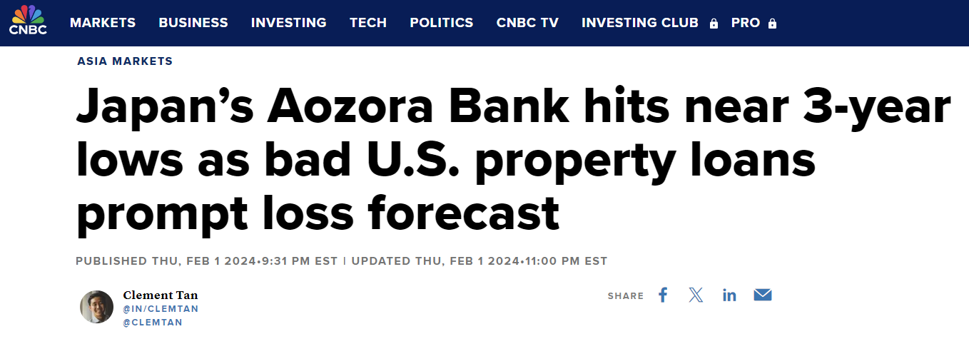 The crisis is gradually spreading everywhere: New York Community Bank (NYCB) of the US, Aozora of Japan and Deutsche Pfandbrief of Germany have warned of bad CRE debt.