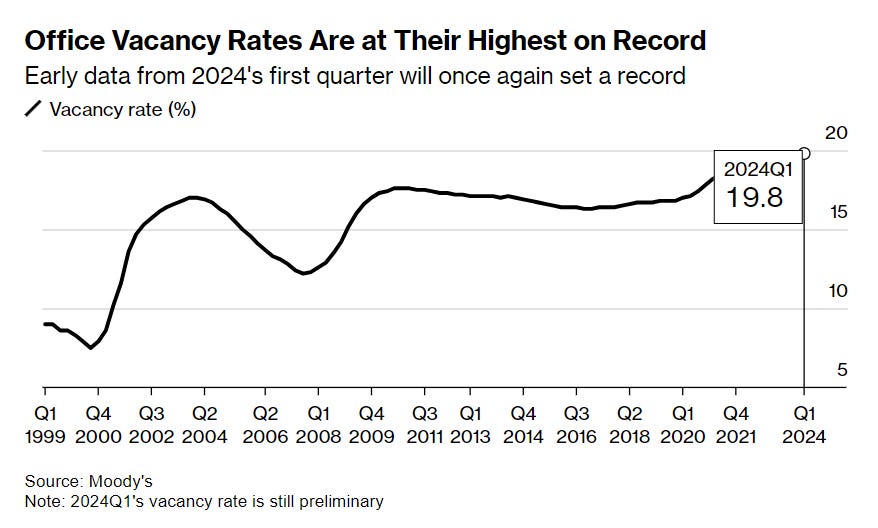 Office vacancy rate in Q1/2024 continues to hit record highs nearing 20%.