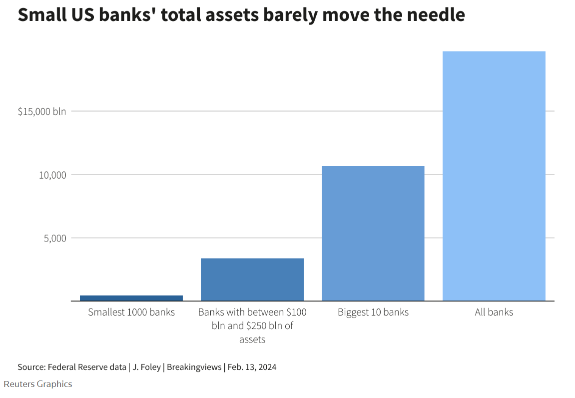 In 2024, the regional bank index has fallen about -13%=, while the overall banking sector is up ~3%.