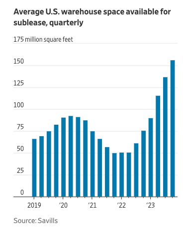 In Q3/2023, vacant warehouse space reached a record high with over 156 million square feet – three times the available space in Q4/2021.