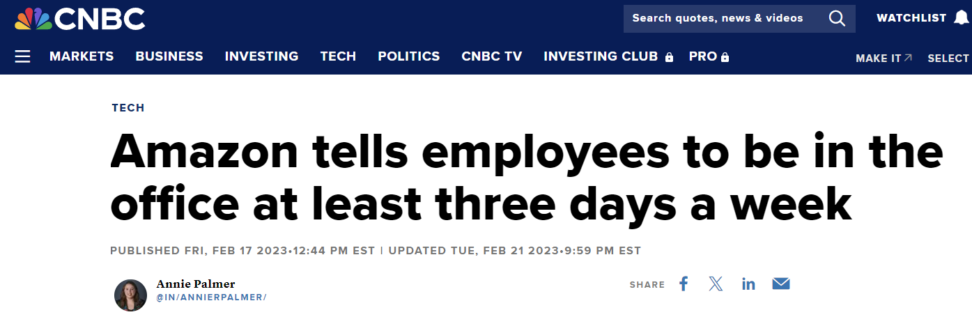Some large companies like Amazon have forced employees to return to the office at least 3 days/week.