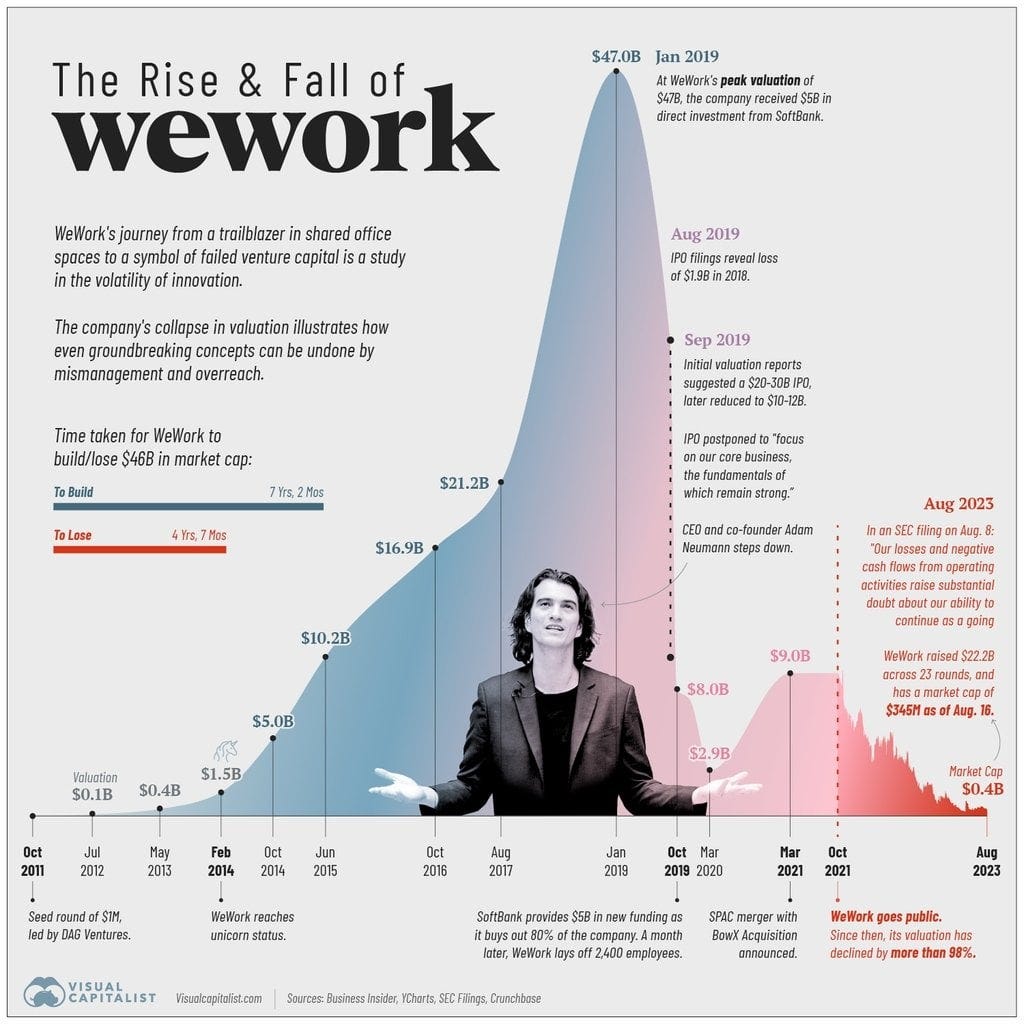 WeWork - from valuation 47 billion USD to the brink of bankruptcy