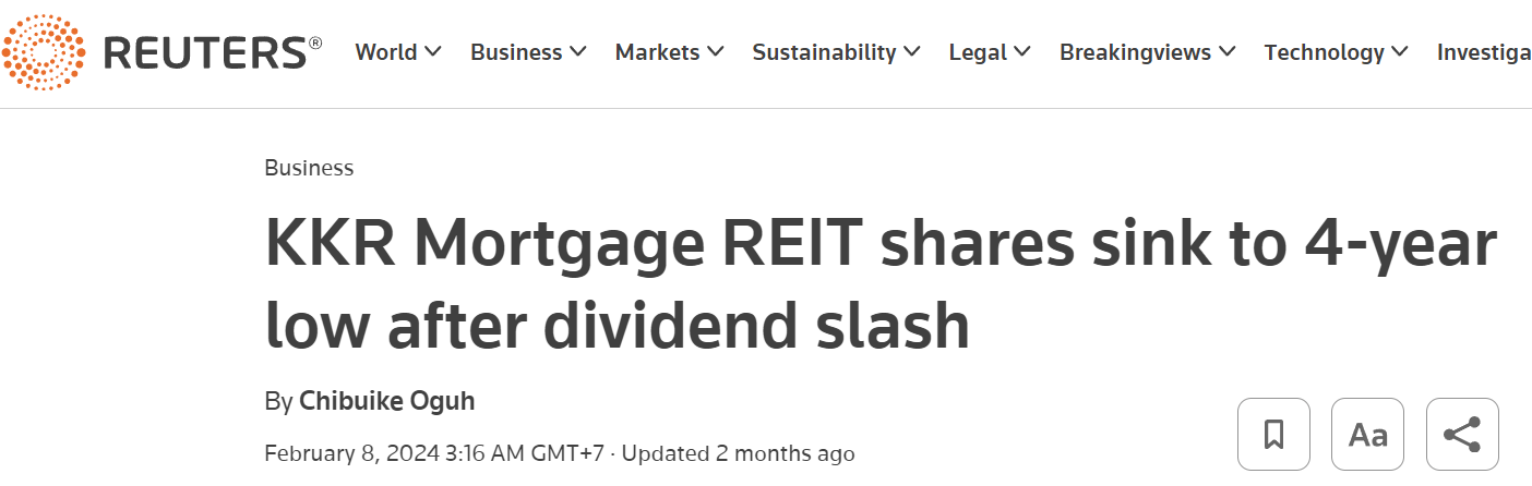 A real estate fund managed by KKR investment group had to cut dividends after recording losses on office real estate loans in Philadelphia.