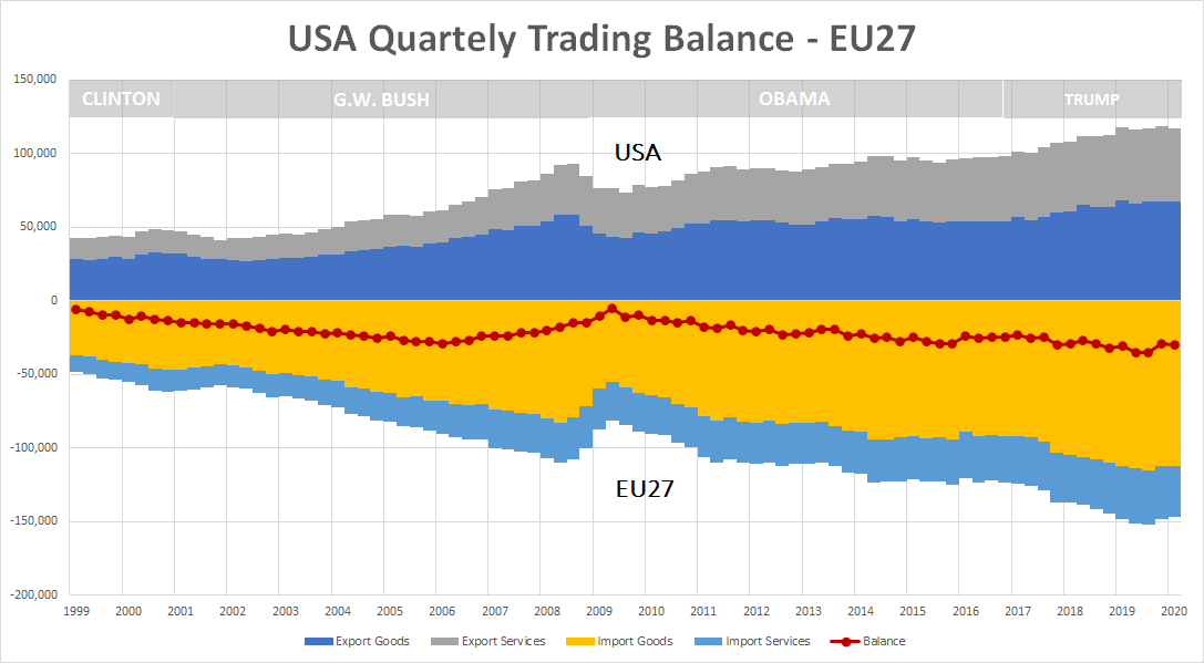Before Covid, the US always ran a goods trade deficit with Europe.